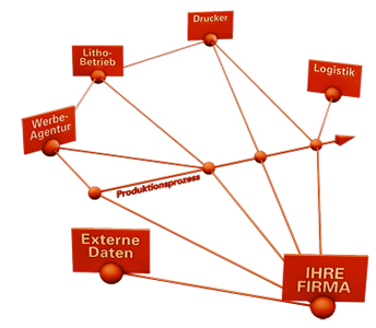 Optimierung einer Katalogproduktion mit dem Ziel der Kosteneinsparung. Der gesamte Produktionsprozess wird aufgeschlüsselt und schematisiert dargestellt. Wichtige Schnittstellen und kritische Phasen werden besonders berücksichtigt. Die Katalogproduktion berührt viele Schnittstellen. In unserem Beispiel sind es Werbeabteilung, Marketing, Vertrieb, Informatik, externe Dienstleister. Nach einer ersten Analyse zeigte sich, dass eine Effizienzsteigerung und damit verbunden eine Kostensenkung durch neue Arbeitsweisen ermöglicht würde. Diese Veränderungen würden den Arbeitsalltag vieler Beteiligter deutlich umgestalten und erfordern daher sorgfältige Vorbereitung.